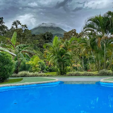 Loma Real Hot Springs Bed & Breakfast La Fortuna biedt een zwembad en uitzicht op de patio en ligt op circa 200 meter afstand van Termales del Bosque Hot Springs. Gasten kunnen genieten van een continentaal ontbijt en toegang tot een patio.